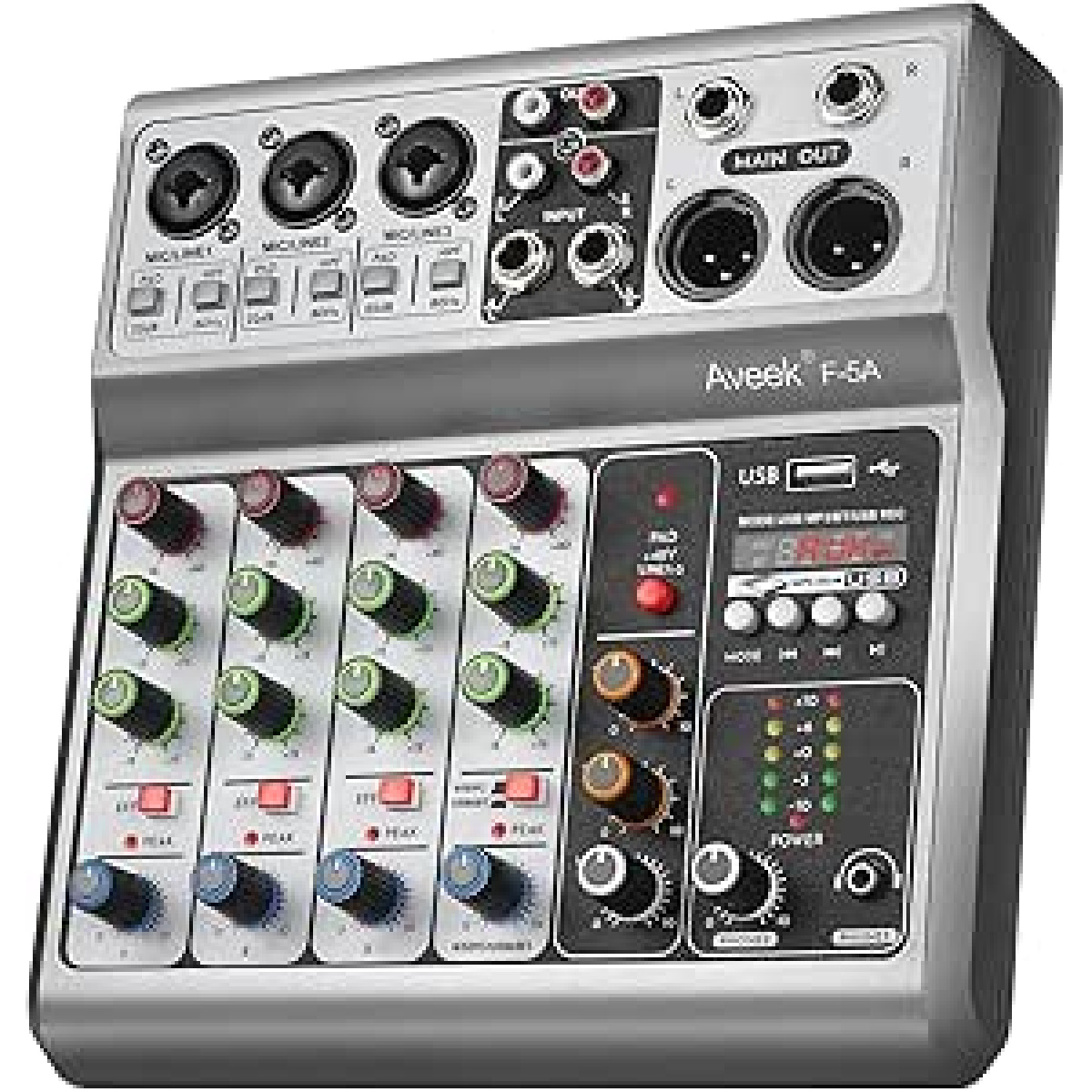Table de mixage audio professionnelle; console de mixage de carte son avec effet de retard d’écho USB Bluetooth numérique 5 canaux; entrée stéréo 48 V