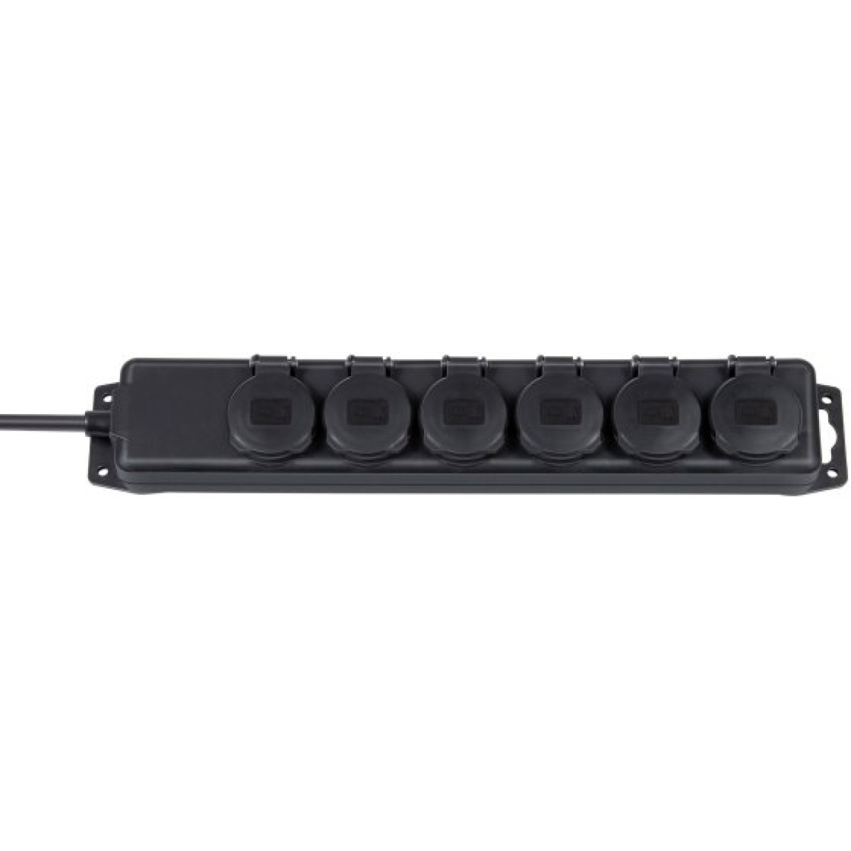 Bloc multiprise 6 prises 230 V avec protection IP44. Boîtier résistant; prises avec capuchons de sécurité. Conçu pour la distribution électrique sur plateau; atelier ou extérieur. Usage alimentation sécurisée équipements audio/vidéo.