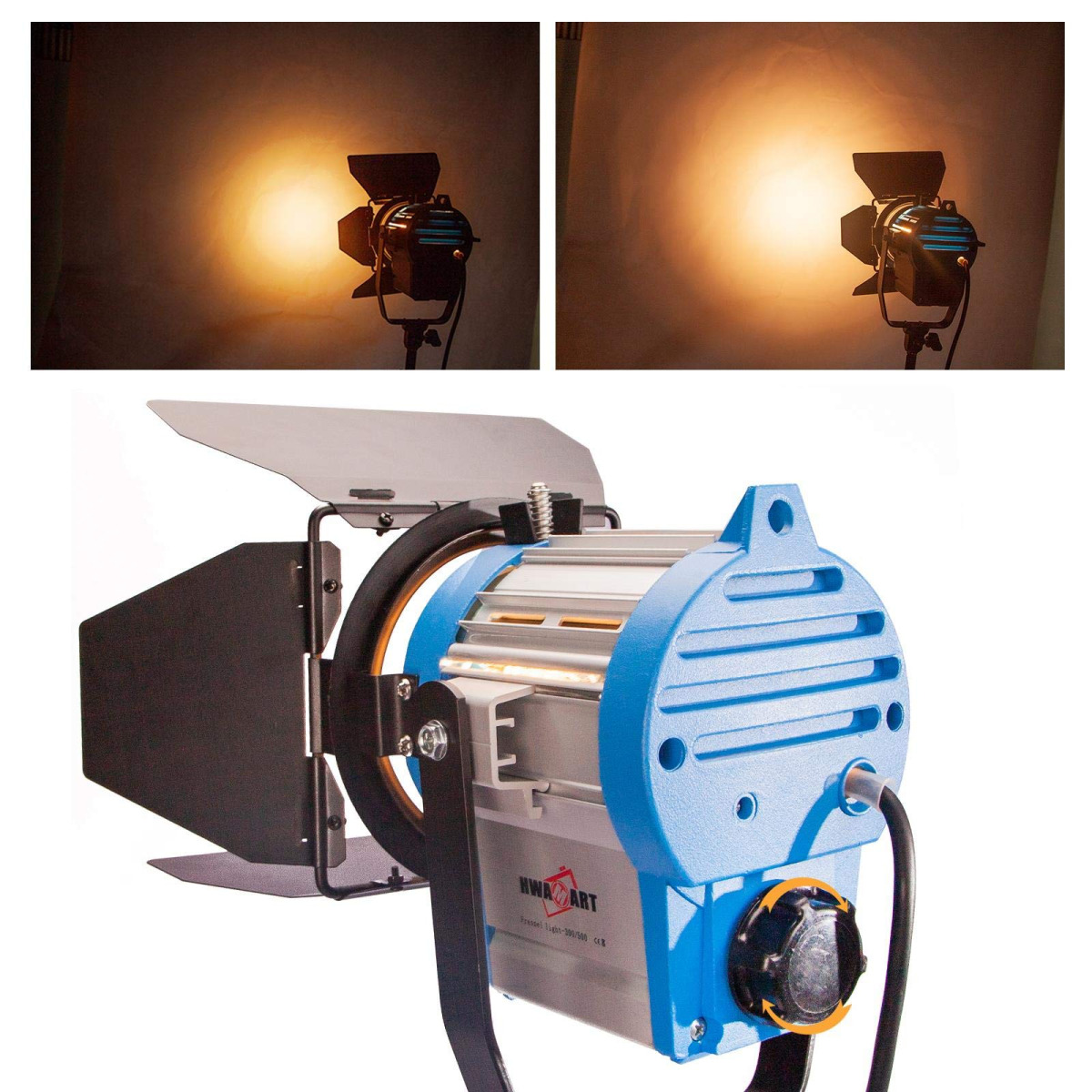 Projecteur d’éclairage à lampe tungstène pour plateau et studio. Température de couleur ≈3200 K; rendu colorimétrique continu. Alimentation secteur; utilisé pour éclairage traditionnel en tournage et pédagogie audiovisuelle.