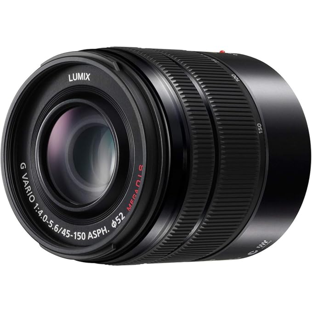 Objectif zoom téléphoto 45–150 mm pour monture Micro 4/3. Autofocus photo et vidéo; stabilisation optique selon version. Utilisé pour cadrages serrés; reportage et tournage pédagogique avec boîtiers Lumix.